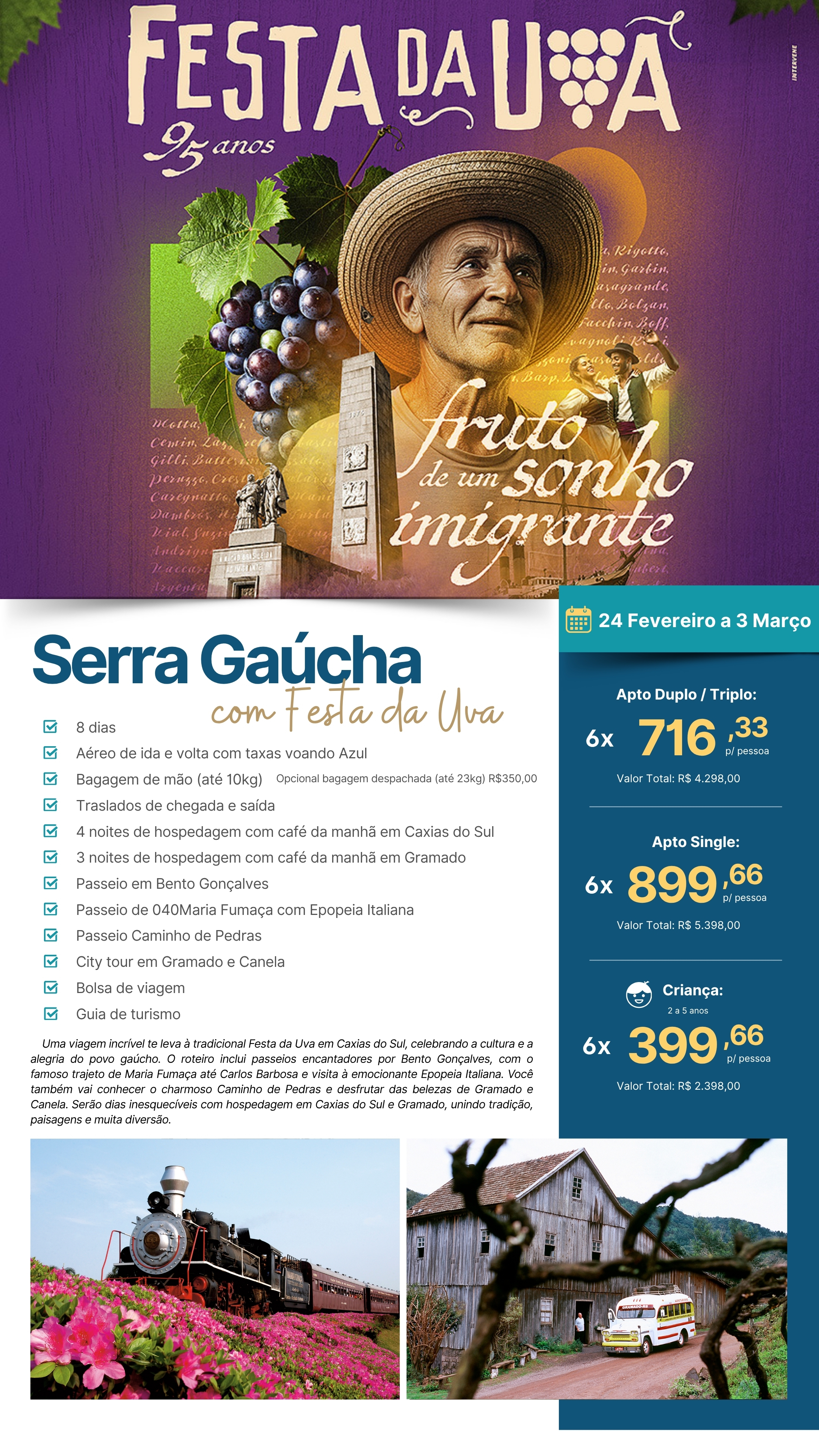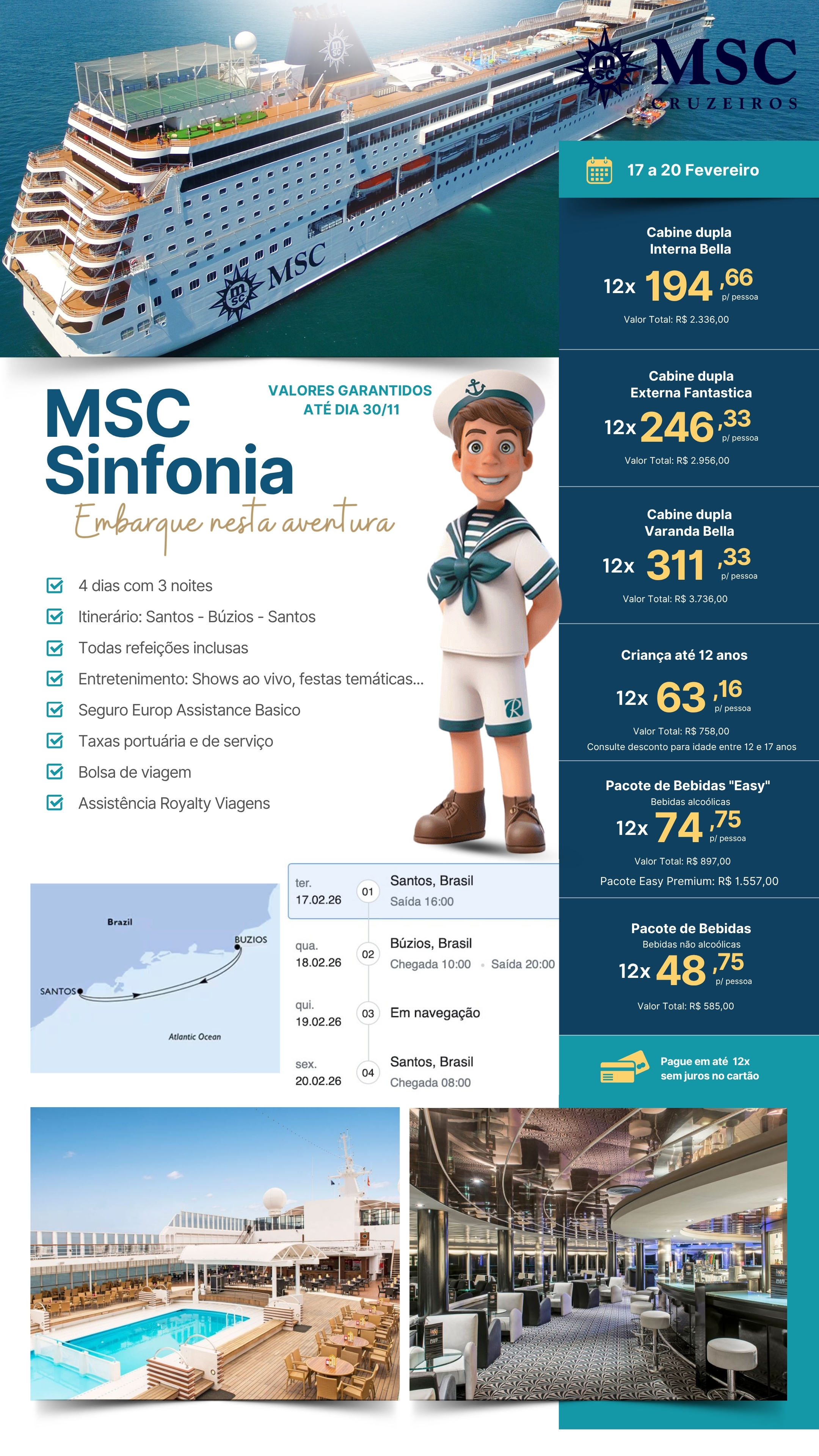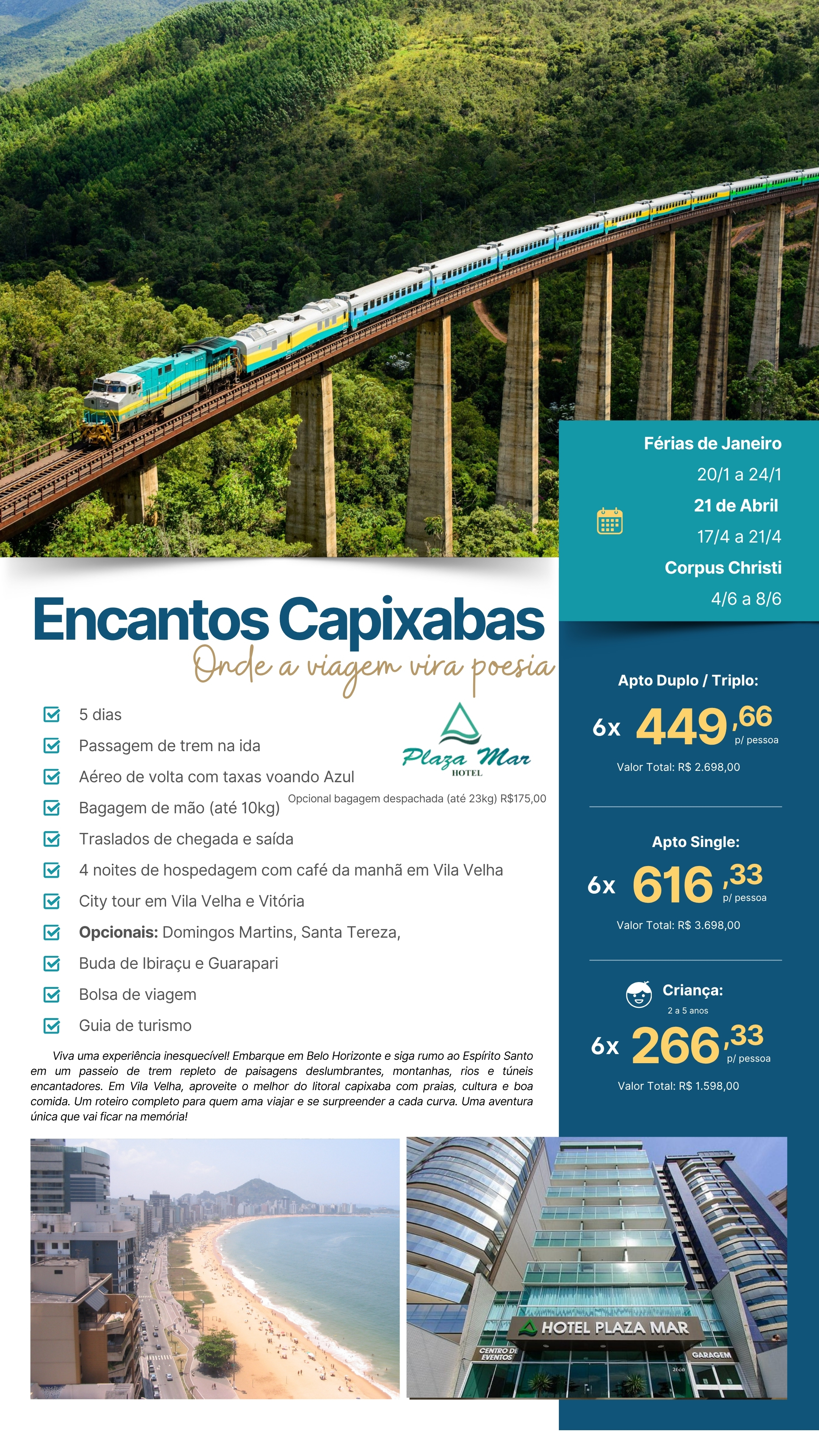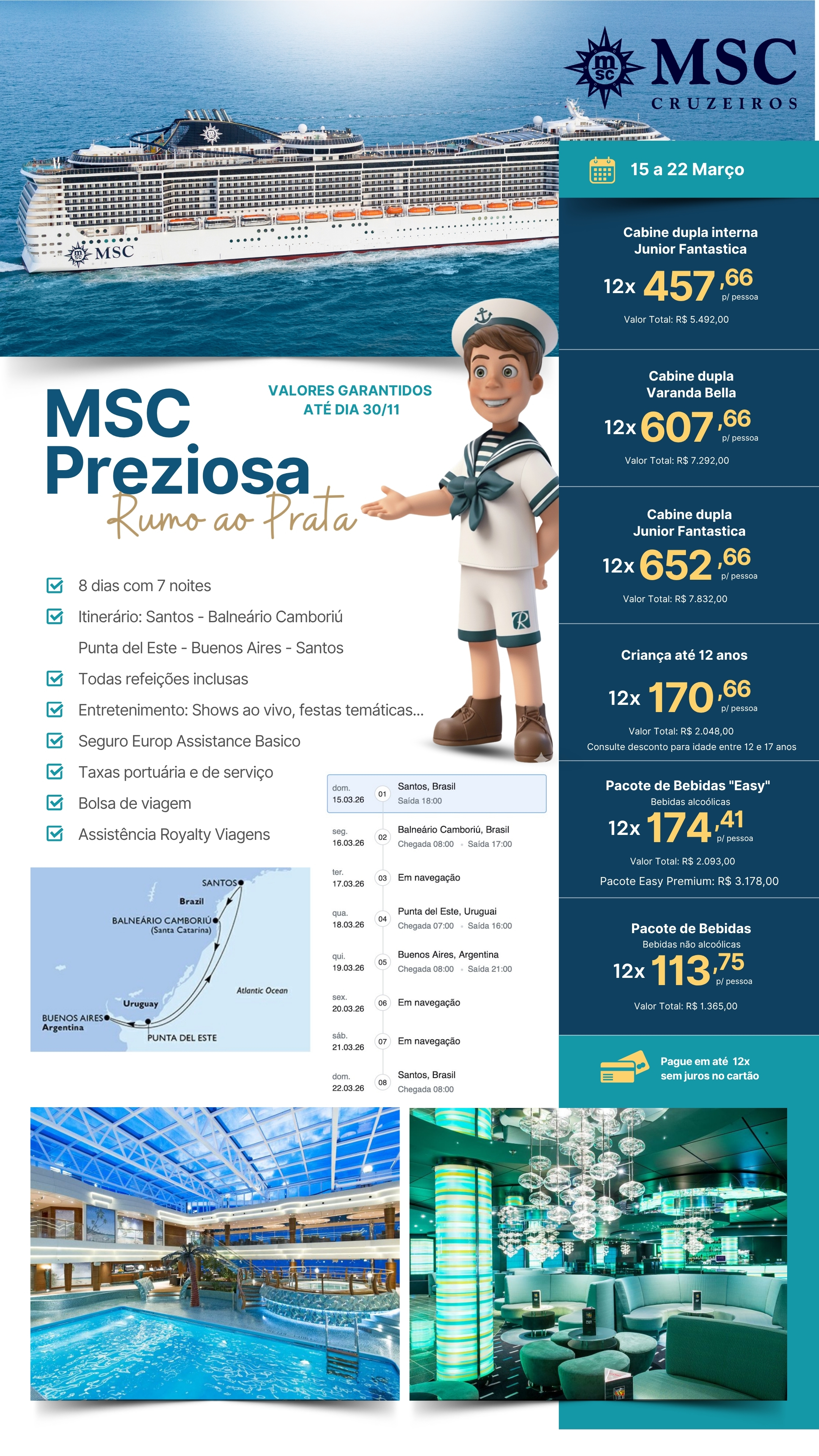 *Tarifas podem sofrer alteração sem aviso prévio. Consulte outras datas e roteiros com nossos consultores.