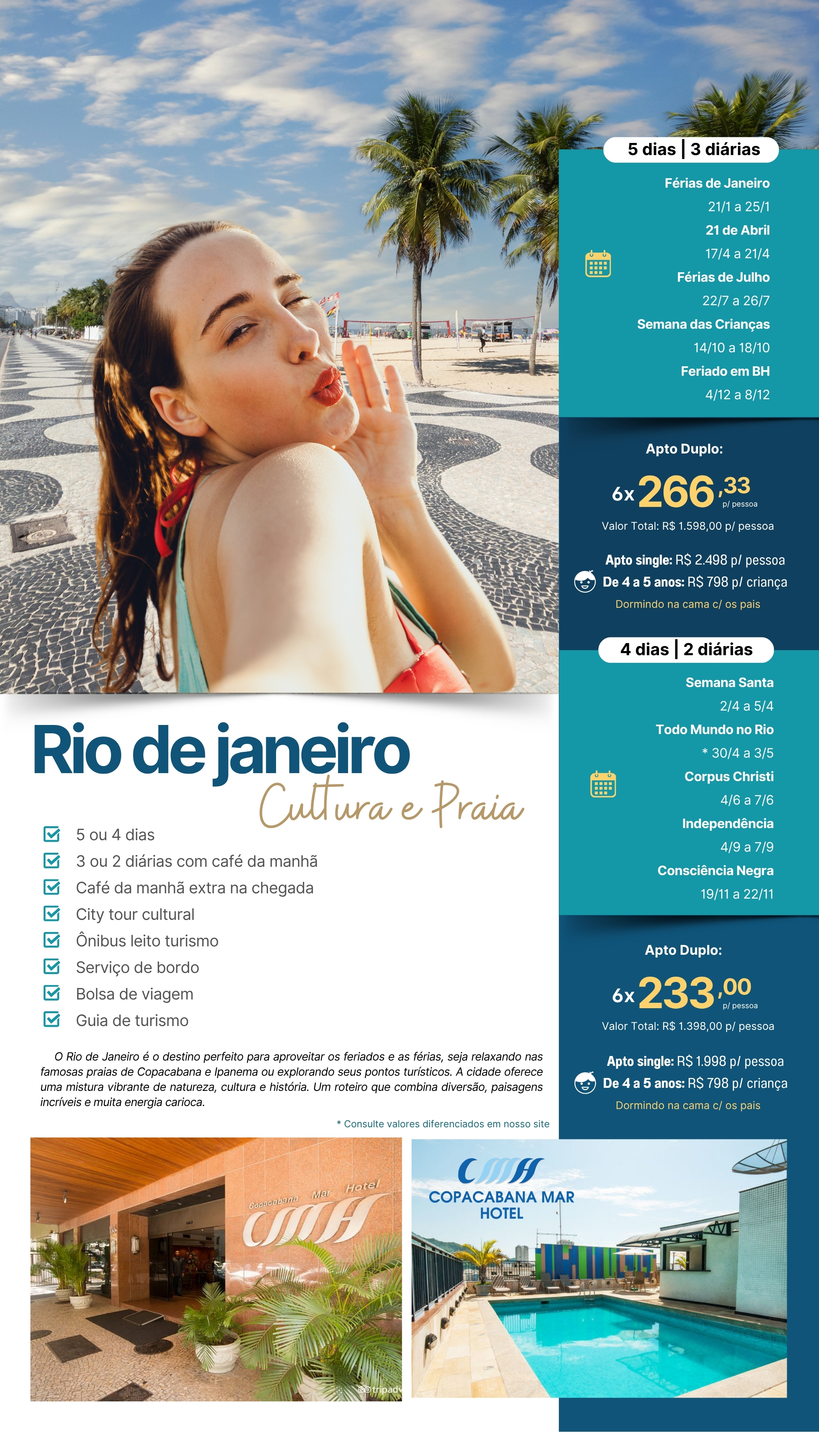 *Tarifas podem sofrer alteração sem aviso prévio. Consulte outras datas e roteiros com nossos consultores.